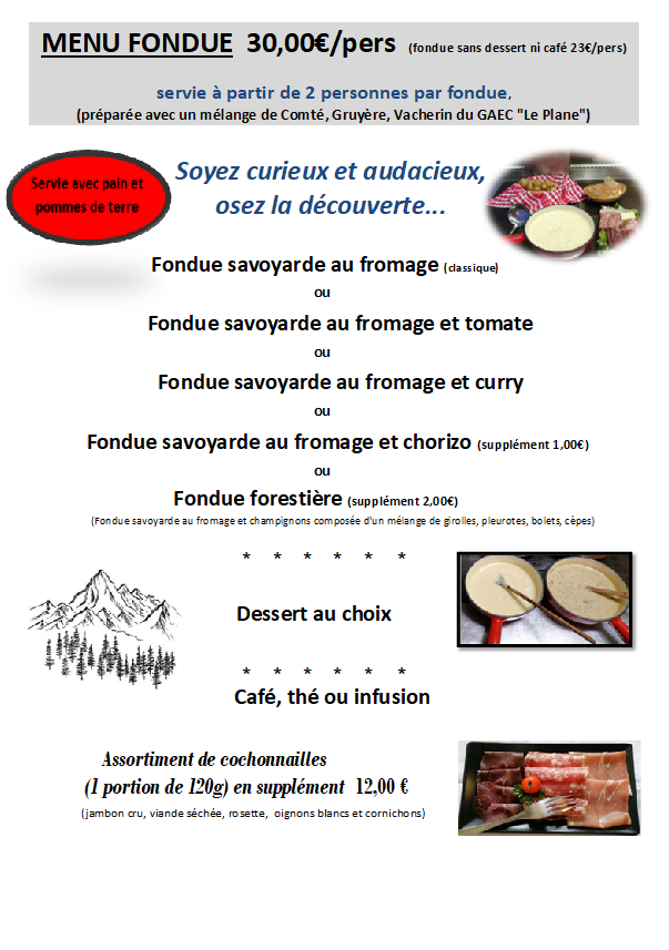 Dans un cadre d'exception à 20 mn de l'agglomération genevoise, au cœur de la Vallée Verte, le chef vous propose de succulents plats traditionnels fait maison avec des produits locaux de qualité en partenariat avec le GAEC Le Plane à Saint André de Boëge et La Ferme du Verger à Bons en Chablais.